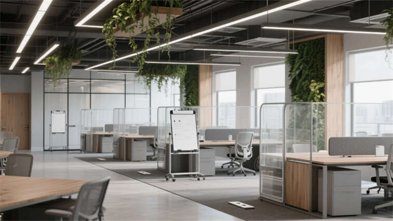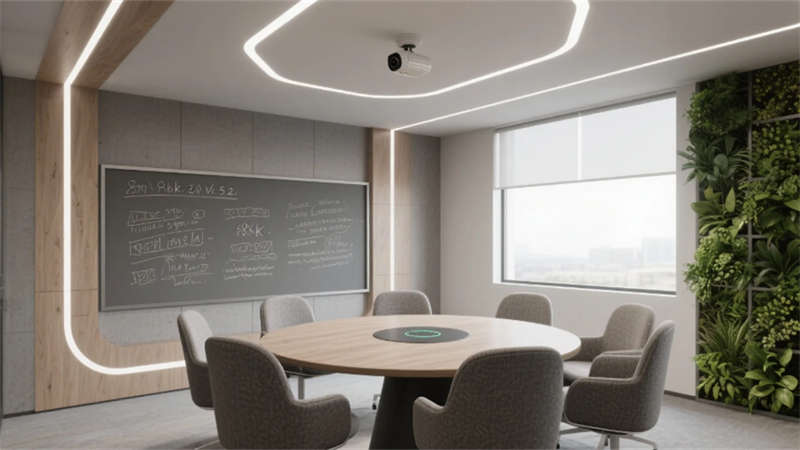 設計更以人文觸覺消解科技冰冷感:企業標志性的霧青藍貫穿于軟裝細節,4000K色溫照明呵護視覺舒適度,模塊化綠植系統構建立體呼吸網絡。從智能調光玻璃到聲學毛氈墻面,每處創新皆隱于無形,讓科技真正服務于人的感知體驗。這座合肥辦公空間,正以靜默的設計語言詮釋著未來工作場域的更多可能——當自然、科技與人文在此共振,辦公不再是程式化的容器,而成為激發創造力的有機生命體。