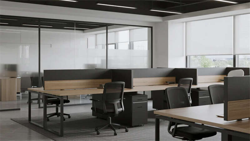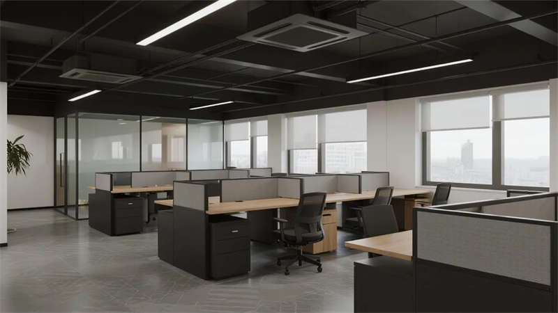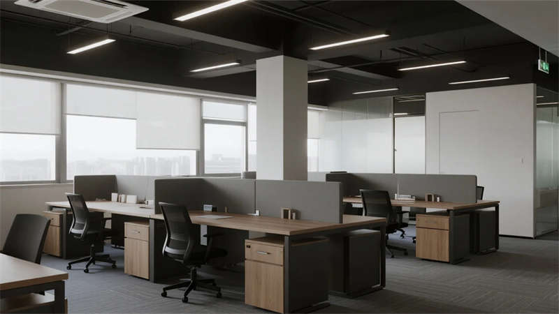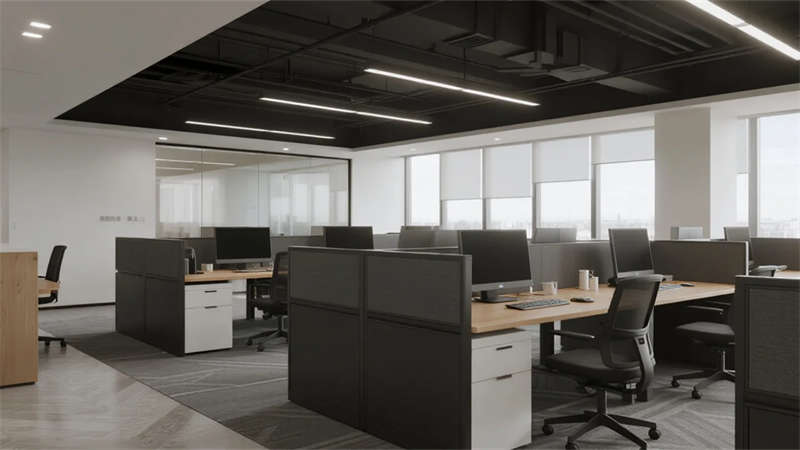 開放辦公區依托巨幅落地窗引入自然韻律,升降工位與模塊化家具賦予空間彈性;獨立辦公室通過垂直百葉調節光影私密性,暗藏式書柜燈光烘托沉穩氣質。核心協作區打破傳統封閉模式,弧形沙發與可書寫玻璃墻激發即興創意,而茶水間綠植墻與城市景觀吧臺,則在高效節奏中注入呼吸感。
