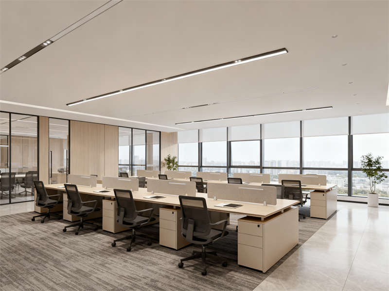 室內(nèi)空間規(guī)劃合理,前臺接待區(qū)簡潔大方,通過柔和的燈光與簡約的家具搭配,營造出親切的接待氛圍;開放式辦公區(qū)注重空間的通透性與互動性,合理的工位布局既保證了員工的獨立辦公空間,又方便團隊間的溝通協(xié)作;獨立辦公室則兼顧辦公與休憩功能,簡約的家具擺放與柔和的色調,為使用者提供安靜、專注的辦公環(huán)境;會議室根據(jù)不同需求設計,整體風格統(tǒng)一,功能完善,滿足各類會議場景的使用;休閑茶水區(qū)則為員工提供了放松的空間,簡約的設計搭配溫馨的細節(jié),讓員工在工作間隙能得到舒適的休憩。?