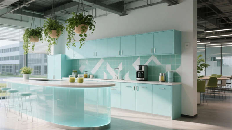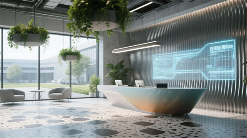 智能協作區配備環形數字屏幕與可書寫隔斷,激發團隊創造力;靜音艙體與獨立辦公室滿足深度工作需求。員工休憩區通過柔和的馬卡龍色調與曲線家具,營造松弛氛圍。接待廳的波紋金屬墻與全息投影臺,在溫潤木元素中點綴未來感。