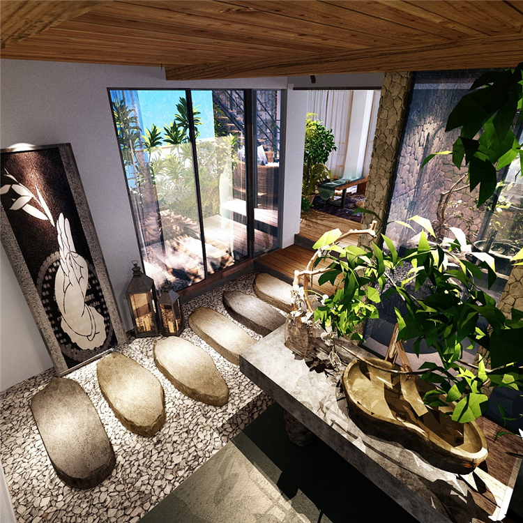 本案民宿度假酒店采用東南亞裝飾設計風格