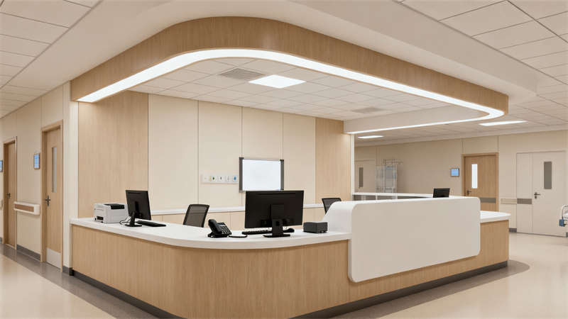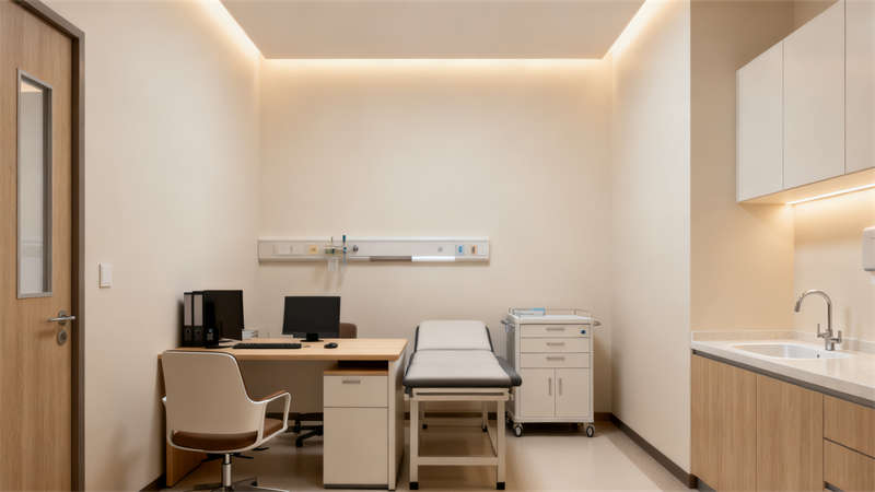 室內(nèi)空間延續(xù)外觀的簡約基調(diào),在材質(zhì)與色彩選擇上保持一致性。大廳以淺米色墻面搭配淺灰色地面,搭配暖白色燈光,營造出溫馨舒適的氛圍,緩解患者就醫(yī)時的緊張情緒;診室設(shè)計注重實用性與私密性,合理劃分診療區(qū)域與候診區(qū)域,墻面采用易清潔的環(huán)保材質(zhì),確保醫(yī)療環(huán)境的衛(wèi)生安全;病房以淺色系為主,搭配柔和的窗簾與溫馨的裝飾,為患者提供安靜舒適的康復(fù)環(huán)境,同時考慮到醫(yī)療需求,合理布置醫(yī)療設(shè)備擺放空間,兼顧舒適性與功能性;手術(shù)室采用潔凈度高的專業(yè)裝修材質(zhì),色調(diào)以純凈的白色為主,搭配藍(lán)色輔助色,營造出嚴(yán)謹(jǐn)專業(yè)的手術(shù)環(huán)境,確保手術(shù)過程的安全無菌;藥房設(shè)計注重藥品存儲的規(guī)范性與取藥流程的便捷性,合理劃分藥品分類區(qū)域,采用透明玻璃隔斷,提升取藥過程的透明度;護(hù)士站設(shè)計為開放式與半封閉式結(jié)合,方便護(hù)士與患者溝通,同時保證護(hù)士工作區(qū)域的有序性;康復(fù)訓(xùn)練室則根據(jù)康復(fù)需求,合理規(guī)劃訓(xùn)練區(qū)域,搭配適合康復(fù)訓(xùn)練的器械與柔和的空間色調(diào),為患者提供舒適的康復(fù)訓(xùn)練環(huán)境。整體裝修設(shè)計從患者需求與醫(yī)療功能出發(fā),在風(fēng)格統(tǒng)一的基礎(chǔ)上,實現(xiàn)了不同空間的功能適配,打造出兼具溫馨感與專業(yè)性的現(xiàn)代化醫(yī)院空間