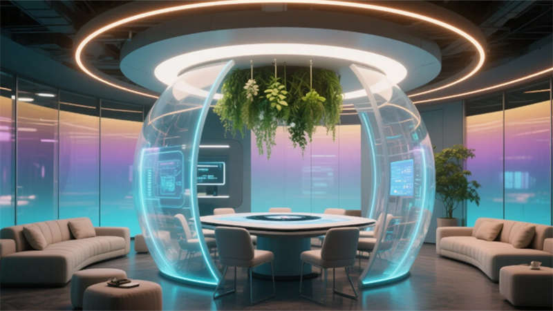 這座人工智能核心建筑以“人本科技”為基因,將自然生態(tài)脈絡(luò)植入未來(lái)科技肌理。流動(dòng)空間打破傳統(tǒng)辦公界限,智能大堂的垂直森林與數(shù)據(jù)藝術(shù)共生,協(xié)作艙如發(fā)光的神經(jīng)節(jié)點(diǎn)散布于開(kāi)放平面。實(shí)驗(yàn)室成為科技與自然對(duì)話的劇場(chǎng),玻璃幕墻外竹林隨風(fēng)搖曳,室內(nèi)數(shù)據(jù)流如星軌閃爍。