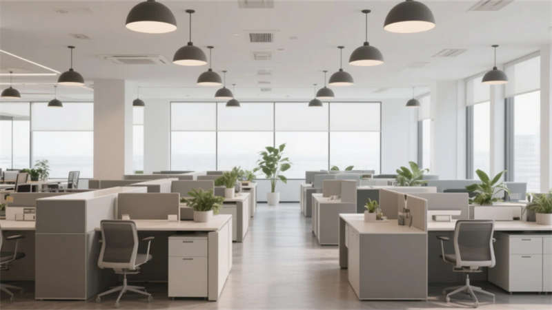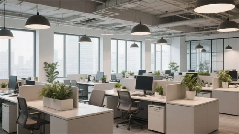 本辦公樓設計以簡約現代風格為核心,打造一個統一而流暢的空間體驗。整體強調功能性、舒適性和美學平衡,每個功能區均采用中性色調、干凈線條和自然元素,營造出寧靜和諧的環境。大堂入口以開放通透的布局迎接用戶,結合玻璃幕墻和木質細節,傳遞專業而溫馨的第一印象。開放式辦公區通過模塊化家具和充足采光,促進團隊協作與效率。會議室設計注重靈活性,透明隔斷和集成設備支持高效交流。員工休息區和餐廳咖啡吧作為社交中心,提供舒適休閑空間,增強員工福祉。經理辦公室平衡隱私與開放性,簡約家具營造專注氛圍。走廊和衛生間延續統一美學,注重清潔與引導性,確??臻g銜接自然。