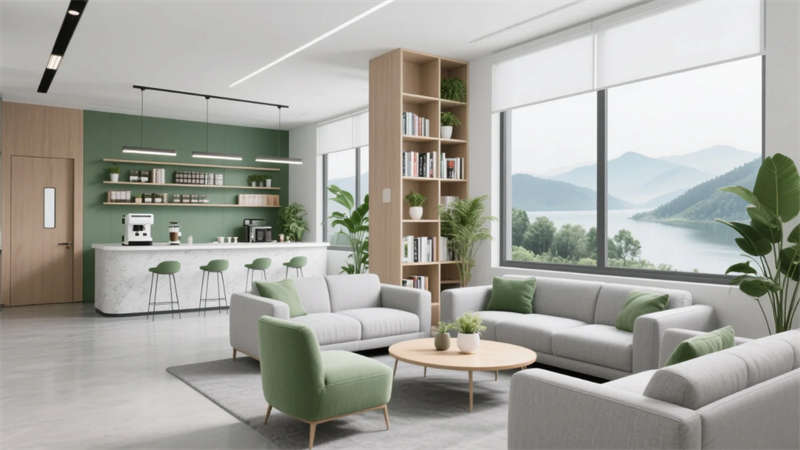 這座辦公室設(shè)計(jì)以滁州為靈感,融合自然與創(chuàng)新元素,打造出和諧高效的工作環(huán)境。整體采用現(xiàn)代簡約風(fēng)格,線條流暢而開放,中性色調(diào)搭配木質(zhì)細(xì)節(jié),營造出清爽視覺統(tǒng)一感。設(shè)計(jì)中強(qiáng)調(diào)生態(tài)連接:綠植貫穿各功能區(qū),如休息區(qū)的山水窗景和協(xié)作區(qū)的綠植墻,呼應(yīng)滁州的自然環(huán)境,提升員工舒適度與歸屬感。核心亮點(diǎn)在于靈活空間規(guī)劃——模塊化家具和可移動(dòng)隔斷支持快速重組,適應(yīng)不同工作模式,從專注區(qū)到協(xié)作區(qū),無縫切換個(gè)人與團(tuán)隊(duì)需求。茶水間和休息區(qū)融入社交元素,鼓勵(lì)非正式交流,而經(jīng)理辦公室的私密會(huì)談區(qū)則平衡了效率與人文關(guān)懷。照明設(shè)計(jì)巧妙利用自然光與LED結(jié)合,減少能耗,同時(shí)綠植點(diǎn)綴凈化空氣,體現(xiàn)可持續(xù)理念。最終,空間不僅提升生產(chǎn)力,更成為滁州城市活力的縮影,彰顯現(xiàn)代辦公的進(jìn)化方向。