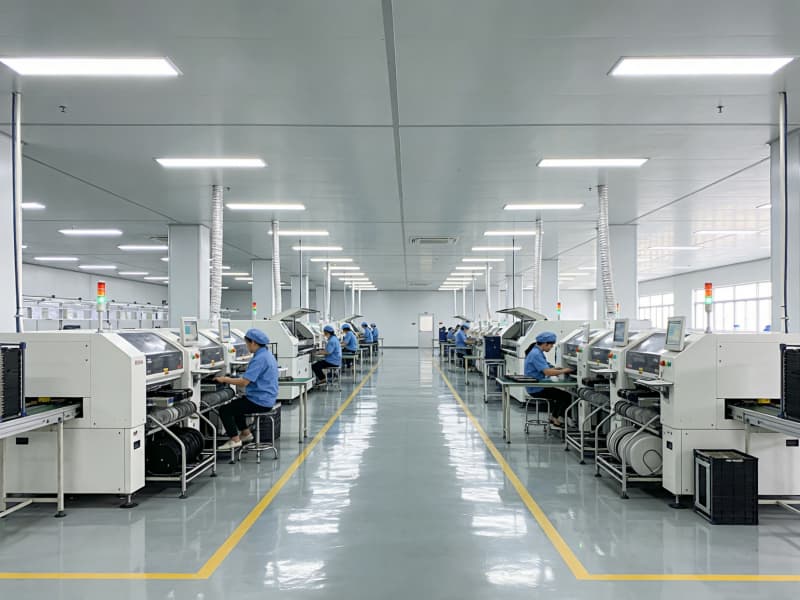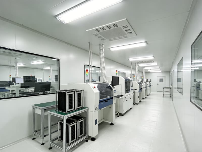 步入內(nèi)部,生產(chǎn)區(qū)空間寬敞,為保證生產(chǎn)操作的精準(zhǔn)度與高效性,采用無柱式大空間設(shè)計。頂部配備先進的照明系統(tǒng),光線均勻柔和,滿足各類電子生產(chǎn)工序?qū)φ彰鞯膰栏褚蟆5孛孢x用防靜電、耐磨的環(huán)氧樹脂地坪,確保電子產(chǎn)品生產(chǎn)環(huán)境的穩(wěn)定性。