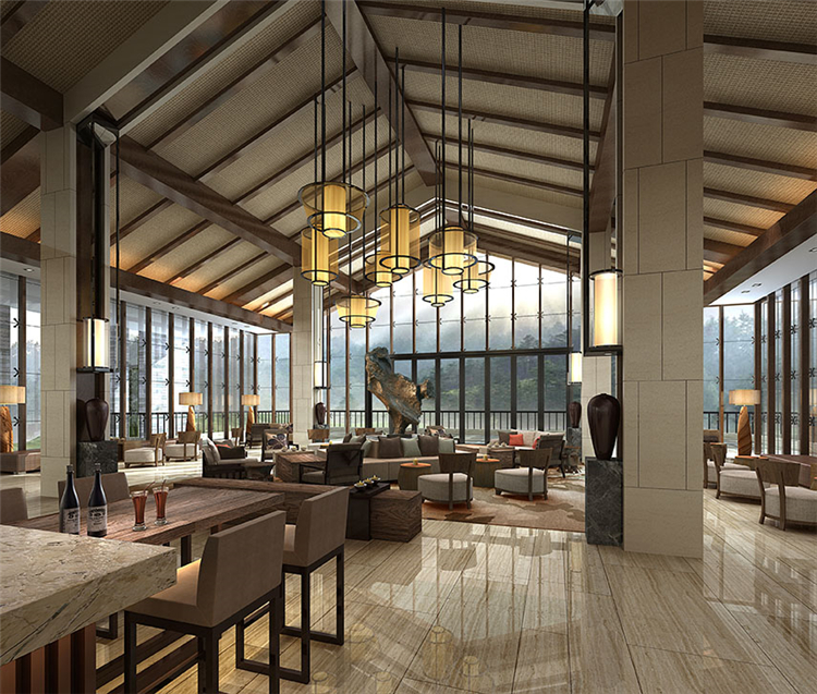 3、在酒店設計中尊重自然,愛護自然,自然的景觀以最大視角展現在室內,自然的元素,以藝術與提煉的方式巧妙借用到室內,因為自然是最美的,也是最重要的!