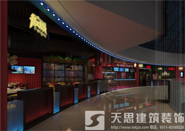 設(shè)計(jì)公司:安徽天思建筑裝飾設(shè)計(jì)部 項(xiàng)目名稱:魚念蝦香辣蝦+一根面設(shè)計(jì)效果 項(xiàng)目面積:600平方 設(shè)計(jì)師:陳工 項(xiàng)目地址:合肥馬鞍山路與南二環(huán)路交口伽僑廣場(chǎng)