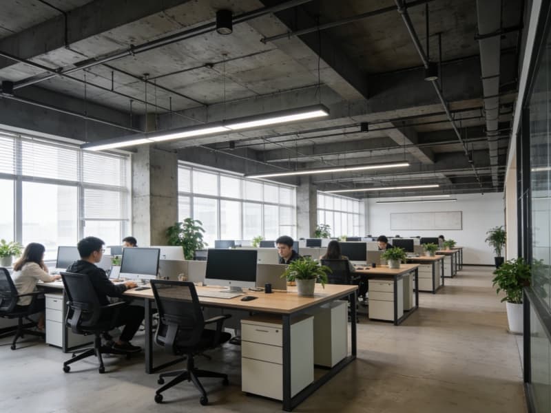 辦公區(qū)域以簡(jiǎn)潔實(shí)用為主,采用開(kāi)放式與獨(dú)立辦公室相結(jié)合的布局。開(kāi)放式辦公區(qū)的辦公桌排列整齊,員工之間溝通便捷。獨(dú)立辦公室則為管理人員提供安靜的工作環(huán)境。辦公家具選用簡(jiǎn)約現(xiàn)代風(fēng)格,搭配綠植,營(yíng)造舒適的辦公氛圍。