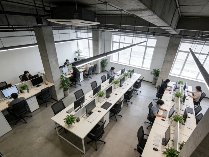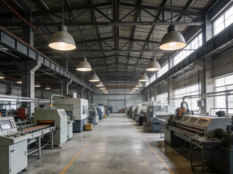 進(jìn)入廠房?jī)?nèi)部,生產(chǎn)區(qū)域空間開(kāi)闊,挑高的設(shè)計(jì)讓整個(gè)空間顯得寬敞明亮。頂部采用裸露的鋼梁結(jié)構(gòu),搭配大型的吊燈,既滿足生產(chǎn)照明需求,又強(qiáng)化了工業(yè)風(fēng)格。地面選用耐磨的水泥自流平,堅(jiān)固耐用且易于清潔。生產(chǎn)設(shè)備按照工藝流程有序擺放,通道寬敞,確保生產(chǎn)流程順暢高效。