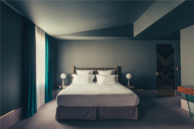這次給大家介紹的酒店提供25間客房,設想為私人公寓,通過六種不同的場景實現裝飾藝術美學。顏色和面料,從芥末黃到勃艮第紅,森林綠和天藍色成為了工匠制作的藝術和裝飾物的背景。