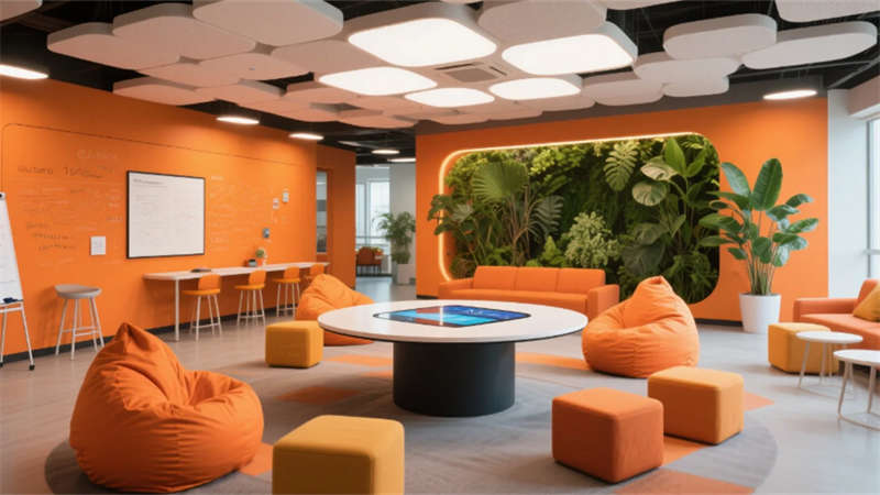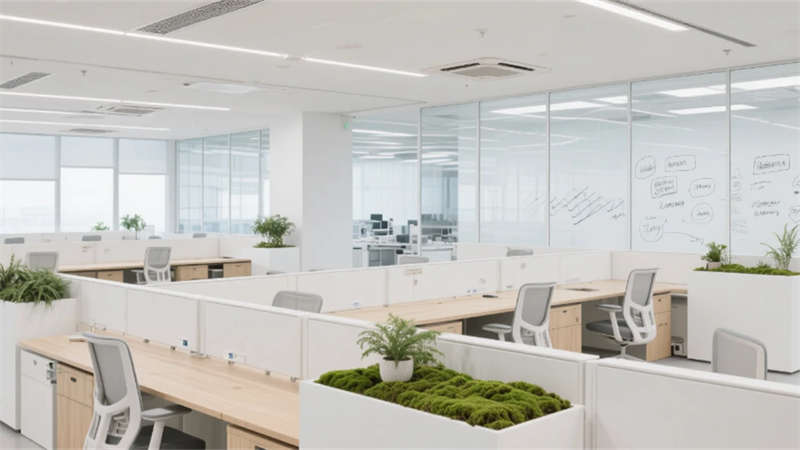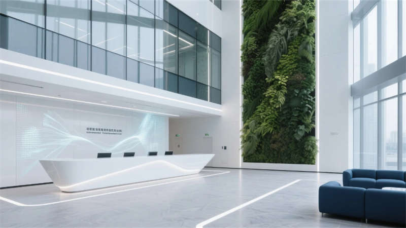 步入其中,純凈的白色與淺灰基調(diào)構(gòu)筑出開闊明亮的基底,大面積玻璃幕墻邀請陽光自由流淌。室內(nèi),垂直綠墻與蔥郁盆栽如音符般跳躍,為嚴(yán)謹(jǐn)?shù)难邪l(fā)環(huán)境注入蓬勃生機(jī)。開放辦公區(qū)強(qiáng)調(diào)協(xié)作與靈活,可書寫的玻璃墻面激發(fā)無限創(chuàng)意;高度自動(dòng)化的核心生產(chǎn)車間則如同精密的樂章,潔凈無塵的環(huán)境、流線型的自動(dòng)化設(shè)備與身著無塵服的工程師,共同演繹著尖端制造的嚴(yán)謹(jǐn)與高效。從充滿科技藝術(shù)感的展示廳、活力四射的創(chuàng)意協(xié)作區(qū),到靜謐專注的工作艙、溫馨舒適的休憩社交中心,再到專業(yè)大氣的會議空間,每一處功能區(qū)域都浸潤著統(tǒng)一的未來主義美學(xué)——簡約的線條、智能的光影、環(huán)保的材質(zhì)與克制的企業(yè)色點(diǎn)綴。