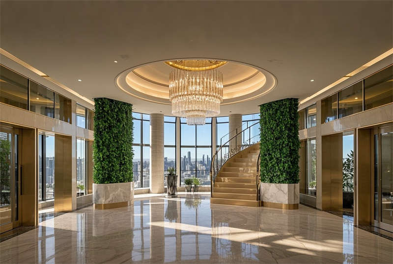 本項目為3000平現代輕奢風格商務酒店,設計融合科技智能與藝術美學。整體采用香檳金與高級灰主調,通過大理石、金屬和玻璃材質碰撞呈現精致質感。功能分區涵蓋大堂接待、行政客房、會議商務、餐飲休閑及康體區域,各空間通過統一的設計語言保持風格連貫性。重點打造大堂挑空區的視覺震撼,客房智能控制系統提升住宿體驗,會議空間配備先進影音設備。餐飲區注重社交場景營造,采用開放式廚房與咖啡吧互動設計。細節處理上強調光影層次,運用隱藏式燈帶與智能調光系統,搭配抽象藝術品提升空間格調。綠植墻與天然材質的運用平衡了現代設計的冷峻感,打造高端商務與休閑融合的酒店空間。