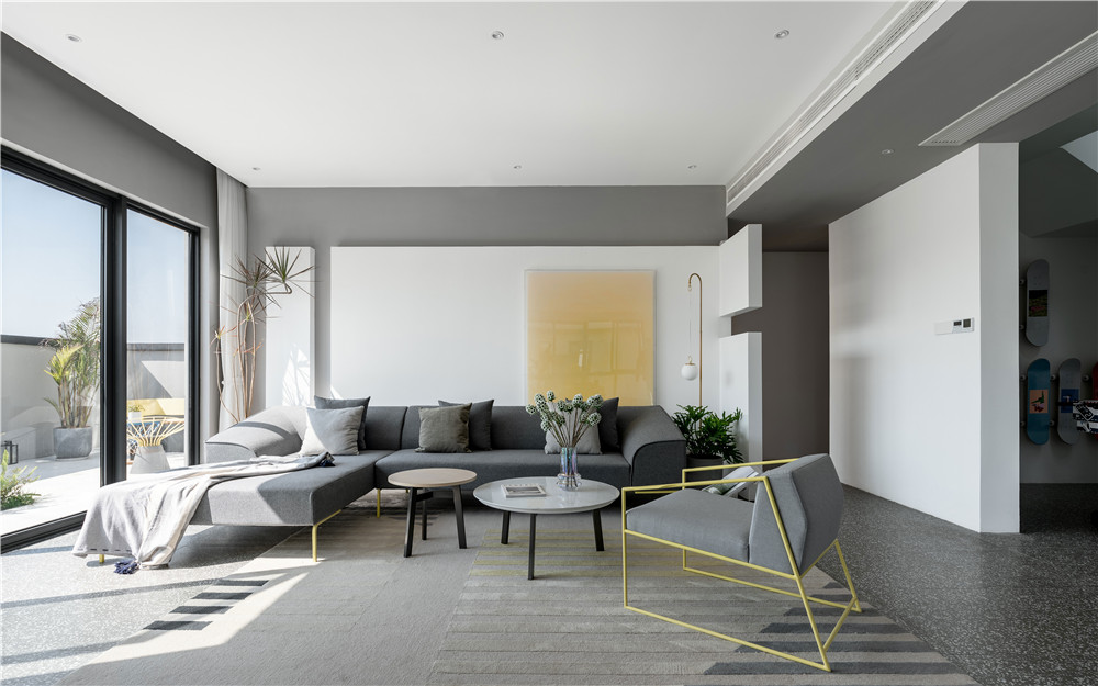 為避免上下樓梯的壓抑感,設計師還特意在樓梯處設置的鏡面反射,延伸空間,降低壓迫感。