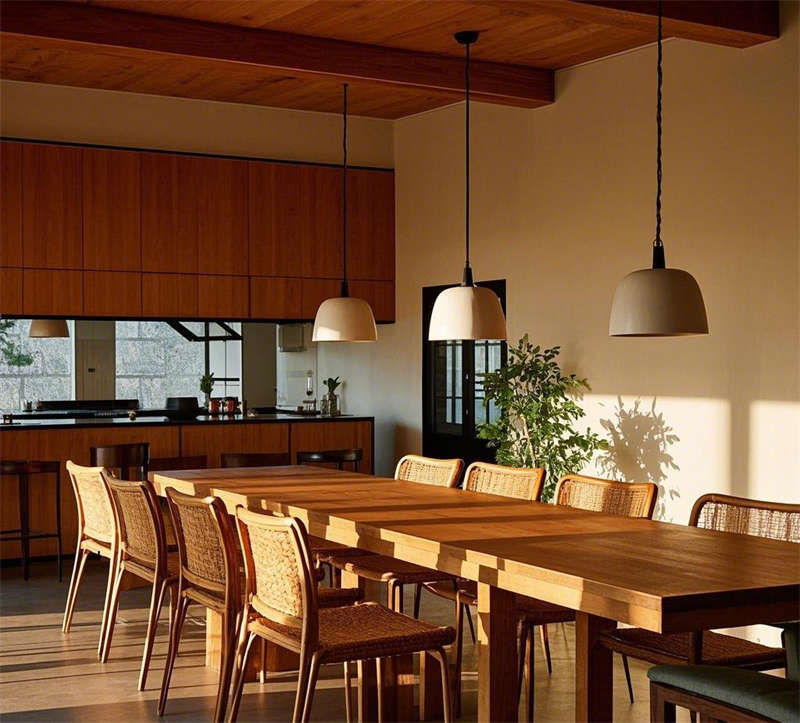 這套1000平民宿設計以自然簡約風格為核心,營造出溫暖舒適、貼近自然的居住體驗。整體空間以原木色調(diào)為主,搭配米白色、淺灰等柔和色彩,輔以綠植點綴,呈現(xiàn)出清新自然的氛圍。大堂以原木色前臺和藤編吊燈為亮點,搭配落地窗引入充足光線,營造出溫馨的迎賓空間。客廳采用開放式布局,原木地板與編織地毯相得益彰,搭配圓形茶幾和落地燈,打造出輕松愜意的休閑區(qū)域。餐廳延續(xù)自然風格,長桌與藤編餐椅的組合簡潔大方,開放式廚房與吧臺的設計增強了空間的互動性。臥室分為兩種風格,一種以藤編床頭和棉麻床品為主,營造出舒適的睡眠環(huán)境;另一種采用日式榻榻米設計,搭配推拉門和竹林景觀,傳遞出寧靜禪意的氛圍。浴室同樣注重自然元素的運用,圓形浴缸與綠植的結合讓人仿佛置身于自然之中,而日式風格的浴室則通過竹制裝飾和庭院景觀,進一步強化了寧靜放松的體驗。戶外庭院以石板小路和木質平臺為主,搭配休閑桌椅和綠植環(huán)繞,為客人提供了一個親近自然的戶外休閑空間。整體設計注重材質與光影的運用,將自然元素與現(xiàn)代簡約風格完美融合,打造出一個舒適、放松的民宿空間。