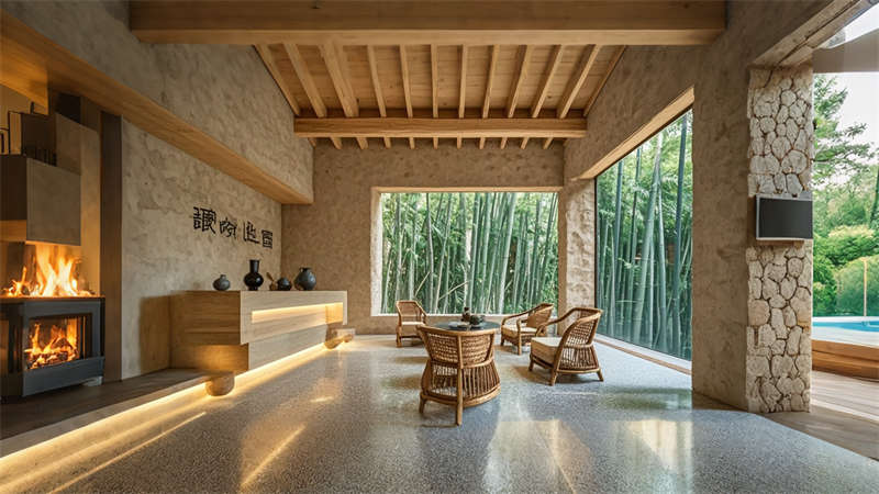 某江淮水岸民宿以“水系文明”為線索,入口設(shè)置霧幕投影再現(xiàn)淝河古渡,走廊地面鑲嵌歷代治水銘文玻璃磚,頂層露臺通過光影秀演繹巢湖流域生態(tài)變遷,形成沉浸式文化長廊。