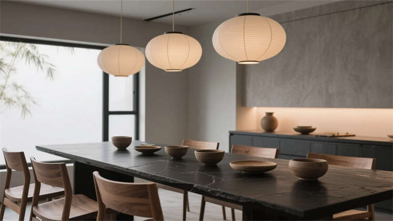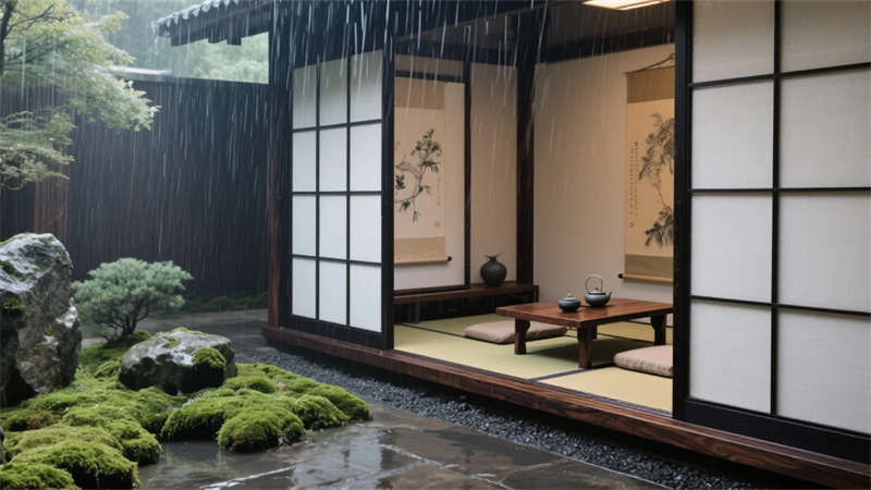 設計深諳留白哲學,麻質織物、陶藝器皿與胡桃木家具,以觸覺溫度軟化冷冽材質。浴室如天然巖洞,玉石板透光似月暈;書閣古籍與當代陶器并置,時空在翻頁間交融。庭院借景造境,雨簾青苔應和自然呼吸,無邊水池倒映天光云影,火爐星夜下燃起歸巢暖意。