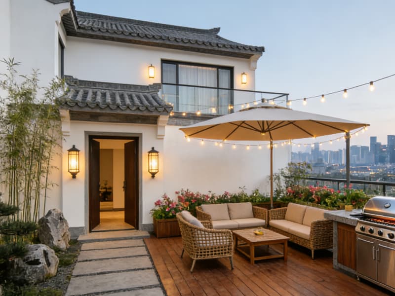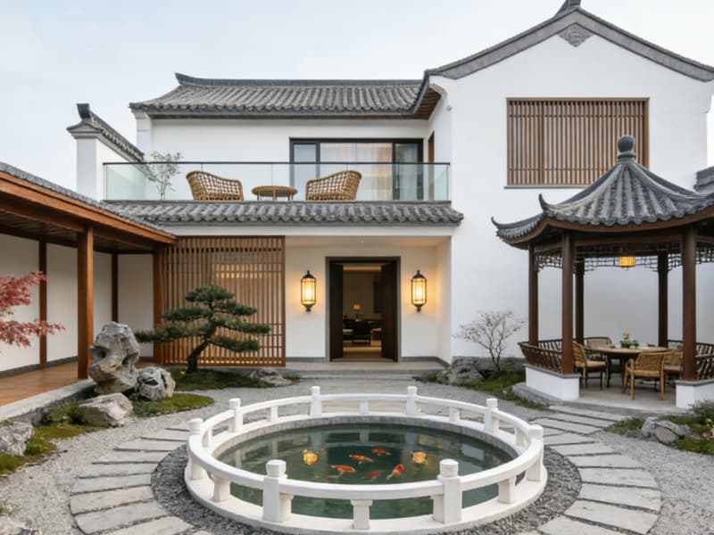 細節設計中,選用環保實木、天然石材等溫潤材質,燈光采用分層設計(公共區暖光氛圍燈、客房柔和閱讀燈),公共區域設置共享洗衣房與行李寄存區,提升旅居便捷性;同時植入本地非遺手作裝飾(如徽州竹編、剪紙),強化空間文化歸屬感。整體設計既保留民宿的人文溫度,又通過輕奢質感與智能配套,為客人打造兼具文化體驗與舒適旅居的優質休憩載體。