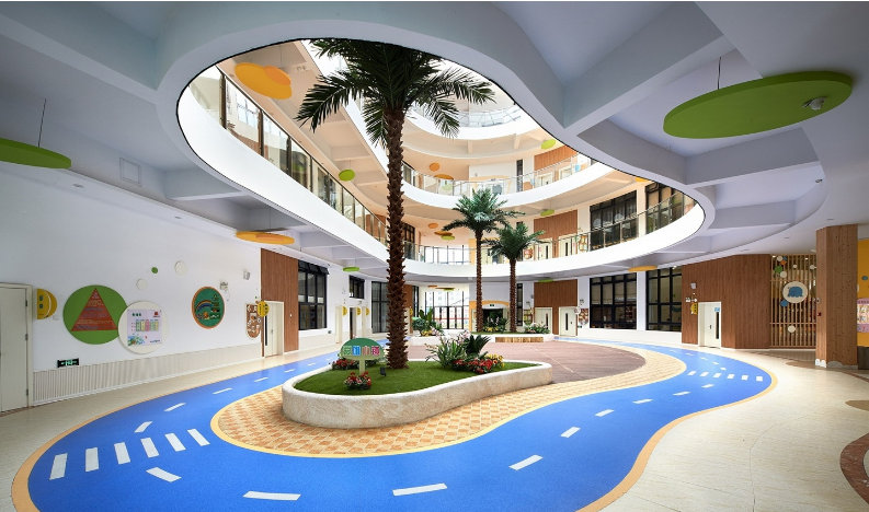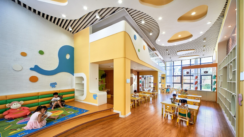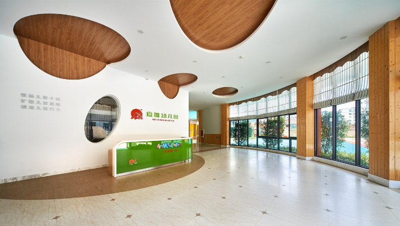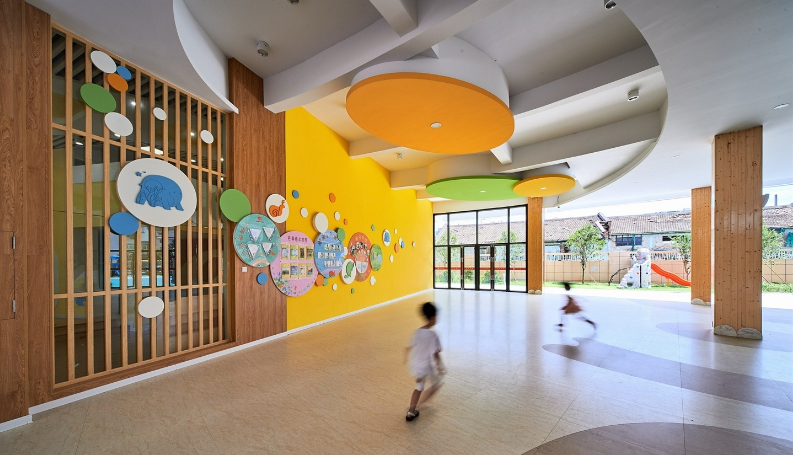 這是一所回歸自然社會(huì)、充滿(mǎn)趣味和學(xué)習(xí)元素的幼兒園環(huán)境,設(shè)計(jì)師將教育內(nèi)涵融入空間,讓幼兒玩中學(xué)、學(xué)中玩,以空間促發(fā)展,體現(xiàn)設(shè)計(jì)的價(jià)值.