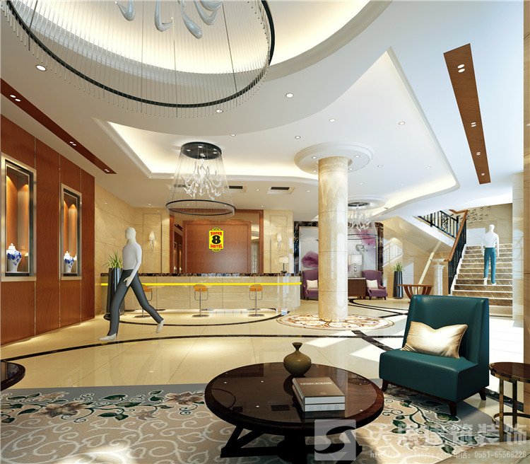 作為商務酒店人流量最多的地方,大堂也是一個重要的空間,面積要與客流量相符合,避免出現擁擠或者空間過剩的情況。而雖說大堂多功能單一,也不應太過單調,服務臺風格與商務酒店設計相對應,而不論是吊燈、壁畫、墻紙、屏風等都要讓大堂有一個比較協調的視覺感官。