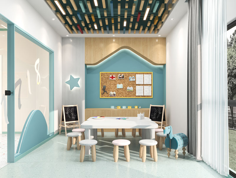 這個設計就比較精致,每個教室都精心設計,教室要使用全部防滑的地板,繪畫教室要使用一些非常有藝術感的墻磚、地磚等等,這樣總體下來的花費是比較高的,花費35萬也只能夠使最低的價格。