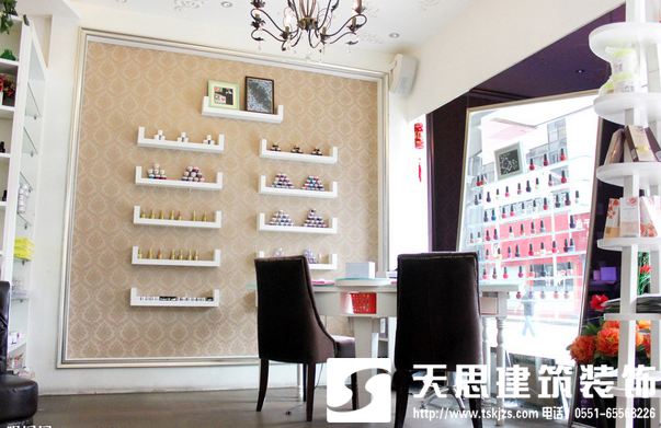合肥美甲店裝修外觀裝修包含門窗、墻面、門頭字的裝修。當時做為門頭用的門窗多選用不銹鋼或鈦金板框,內鑲通體大玻璃窗和玻璃門,玻璃窗口可飾以麗人圖像,以添加透明性 和廣告效應。墻面有多種方法,如拋光和毛邊大理石貼面、磁磚貼面等。門頭字的方法和材料都許多,現在比照盛行的有燈箱式內嵌燈火,非常耀眼;不銹鋼字或銅 字,內襯大理石墻面,效果好,顯層次;還有玻璃鋼字、霓虹燈字等多種方法,可在恰當的方位裝修店的標志。別的,門頭設備標志燈,也是不可或缺少的項目。