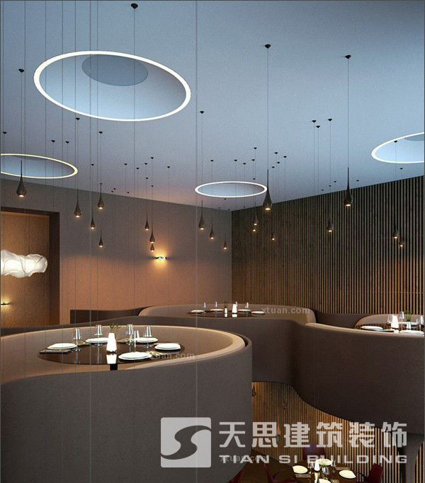 這款會(huì)是星星點(diǎn)點(diǎn)的呢?其實(shí)是這樣的,餐廳上方采用的是那種小小的吊燈,照耀出來就成為了無數(shù)的星星點(diǎn)點(diǎn),抬頭仰望,仿佛看到了夜空中的滿天繁星,很是美妙的畫面哦。