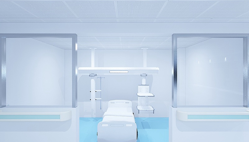在本案中,設(shè)計(jì)師一改醫(yī)院的常規(guī)風(fēng)格,大膽使用了藍(lán)色為基調(diào).藍(lán)色向來(lái)代表著冷靜、睿智,也能起到平復(fù)人們情緒的暗示作用,這次使用在醫(yī)院中,更充滿(mǎn)了科技感.為與醫(yī)院定位相匹配,室內(nèi)并無(wú)多余的裝飾品,干凈、清爽是本次設(shè)計(jì)的最大特點(diǎn).同時(shí),設(shè)計(jì)師也非常注重空間細(xì)節(jié)的營(yíng)造,如醫(yī)院的導(dǎo)視,就從病人的角度考慮,清晰顯眼,指向明確.