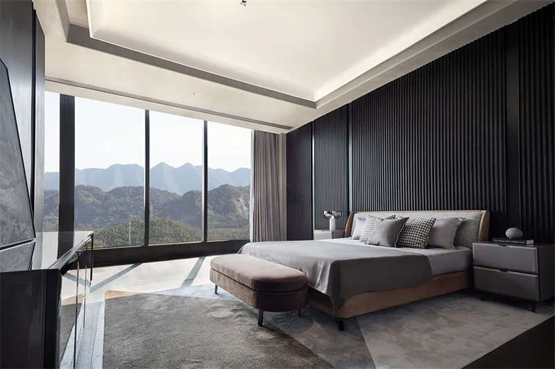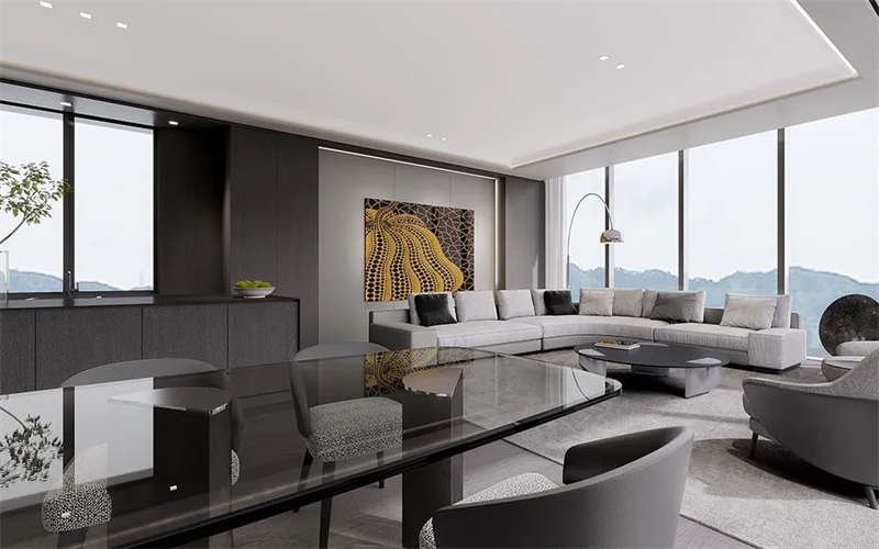 流暢的樓梯設(shè)計(jì)手法貫穿縱向空間,一氣呵成。黑白雙層欄桿扶手、無(wú)縫樹(shù)脂地坪和極具設(shè)計(jì)感的線性燈帶,把這種極致簡(jiǎn)約的設(shè)計(jì)風(fēng)格伸延到整個(gè)空間。