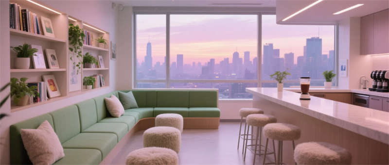 病房區(qū)引入景觀窗體系,將城市綠蔭轉(zhuǎn)化為動態(tài)療養(yǎng)畫作,可調(diào)節(jié)光環(huán)境適配不同康復(fù)需求。核心的康復(fù)花園成為情感樞紐,蜿蜒小徑與冥想臺引導(dǎo)患者進(jìn)行感官重建。醫(yī)護(hù)空間中暖調(diào)材質(zhì)與私密卡座,為高強(qiáng)度工作提供精神緩沖。