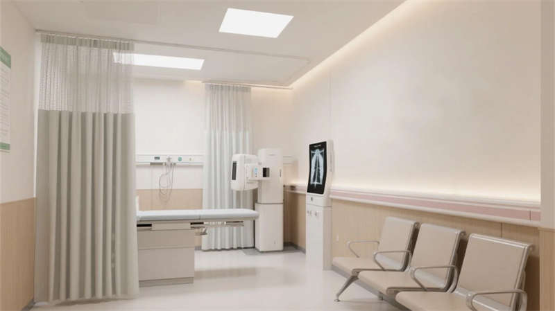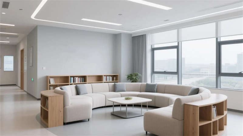 該社區(qū)醫(yī)院設(shè)計(jì)以現(xiàn)代簡約理念為核心,營造出溫馨而高效的醫(yī)療環(huán)境。整體空間強(qiáng)調(diào)人性化布局,接待大廳寬敞明亮,弧形接待臺(tái)與自然光結(jié)合,營造親切的第一印象。候診區(qū)舒適寧靜,沙發(fā)與書架的點(diǎn)綴減輕等待焦慮,診室則注重隱私與專業(yè)感,柔和色調(diào)提升患者信任。藥房設(shè)計(jì)簡潔清晰,便于快速取藥,急診室布局高效,確保緊急響應(yīng)流暢。化驗(yàn)室和影像科突出功能性,無菌環(huán)境與設(shè)備集成保障精準(zhǔn)診療,康復(fù)區(qū)開放通透,綠植與自然光促進(jìn)身心恢復(fù)。所有區(qū)域統(tǒng)一運(yùn)用中性色調(diào)、木質(zhì)元素和流線型家具,強(qiáng)化視覺連貫性,同時(shí)融入充足采光與綠意,打造舒緩氛圍。設(shè)計(jì)不僅提升醫(yī)療體驗(yàn),還呼應(yīng)了合肥的城市人文特色,為居民提供一處安心、便捷的健康港灣。