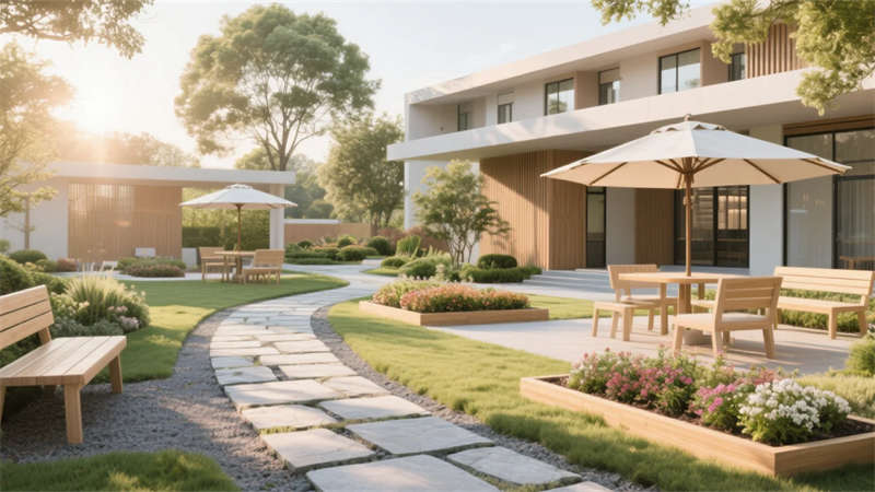 這套老年康養中心設計以現代簡約風格為核心,營造一個溫馨、安全且充滿活力的生活空間。設計強調自然光與柔和色彩的融合,入口大廳以開闊布局和藝術元素傳遞家的溫暖,休息區則通過舒適沙發和綠植打造社交港灣。餐廳和活動室注重功能性,淺色調家具與靈活布局鼓勵日常互動,促進社區歸屬感。居住單元采用圓角細節和私密氛圍,確保舒適休憩。康復訓練區融入防滑設計和自然光,支持健康活動。戶外庭院成為心靈綠洲,石板步道與花壇提供寧靜放松。多功能廳則適應多樣需求,增強空間活力。整體設計以適老化理念貫穿,避免繁雜裝飾,突出簡約美學與人性關懷,讓每位長者感受到尊重與陪伴,在簡約中體驗生活的美好。