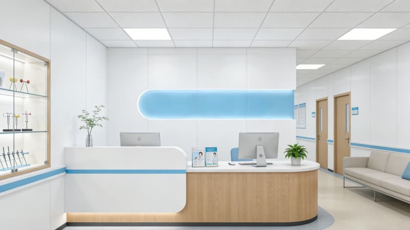 本次設計聚焦合肥3000平大型口腔醫院,立足診療實用性與患者體驗感,兼顧現代化美學與行業規范,打造適配大型口腔機構的專業診療空間。整體規劃涵蓋2層外觀設計及內部全功能區域,包含大氣簡約的前臺接待區、動線流暢的走廊、高效便捷的護士站、靜謐舒適的醫生辦公室,以及兩間標準化診療診室和一間特色兒童診室,分區明確、布局科學。設計以淺色系為主調,搭配柔和燈光緩解患者就醫焦慮,兒童診室融入趣味元素,兼顧安全性與親和力;各區域預留充足操作空間,適配口腔診療設備擺放,優化診療流程。依托合肥地域屬性,結合3000平規模化優勢,將人文關懷融入每一處細節,既滿足日常診療、會診需求,又彰顯機構專業品質,助力打造合肥本地有影響力的口腔診療標桿。