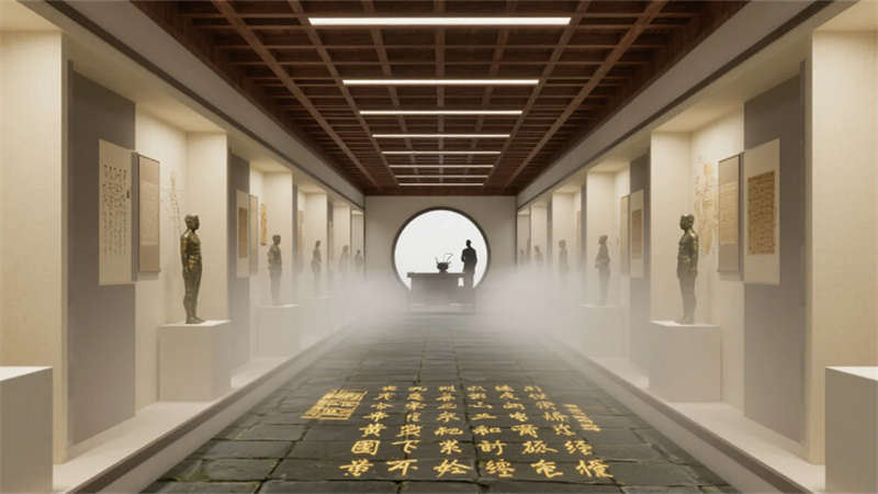 針灸室格柵隔斷透出晨光竹影,經絡圖前銀針泛著柔光;文化長廊地面流動篆書金句,引領視線穿透月洞門望向煎藥銅鍋升騰的薄霧。茶療區古茶樹畔,藥汽氤氳于青花茶盞,百草浮雕墻下藤椅邀人小憩。